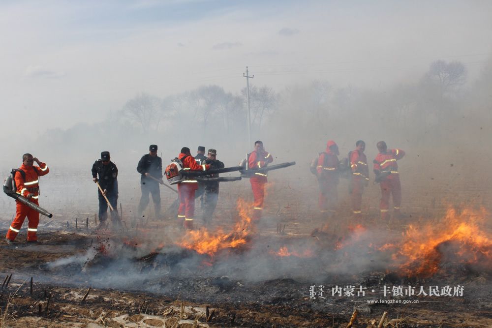 3月29日,丰镇市在元山子乡举行了森林草原防扑火实战演练。